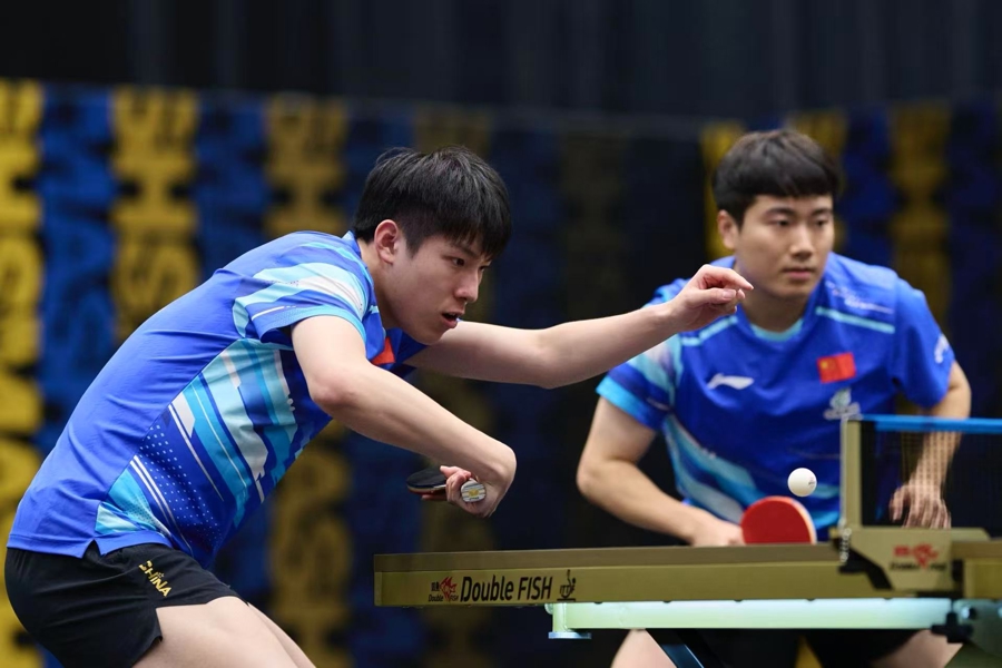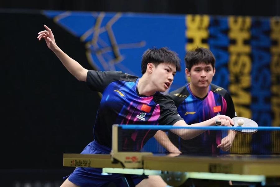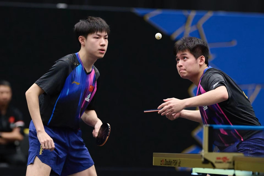 国乒新组合梁靖崑/温瑞博迎来硬仗,对手是世乒赛亚军、中国台北组合林昀儒/高承睿。前两局国乒组合出手果断,分别以11比8、11比9拿下;但第三、四局略显保守,被对手以11比9、11比9连扳两局。决胜局双方陷入胶着,梁靖崑/温瑞博在3比6落后时顽强追平,最终以11比9惊险取胜,晋级男双八强。